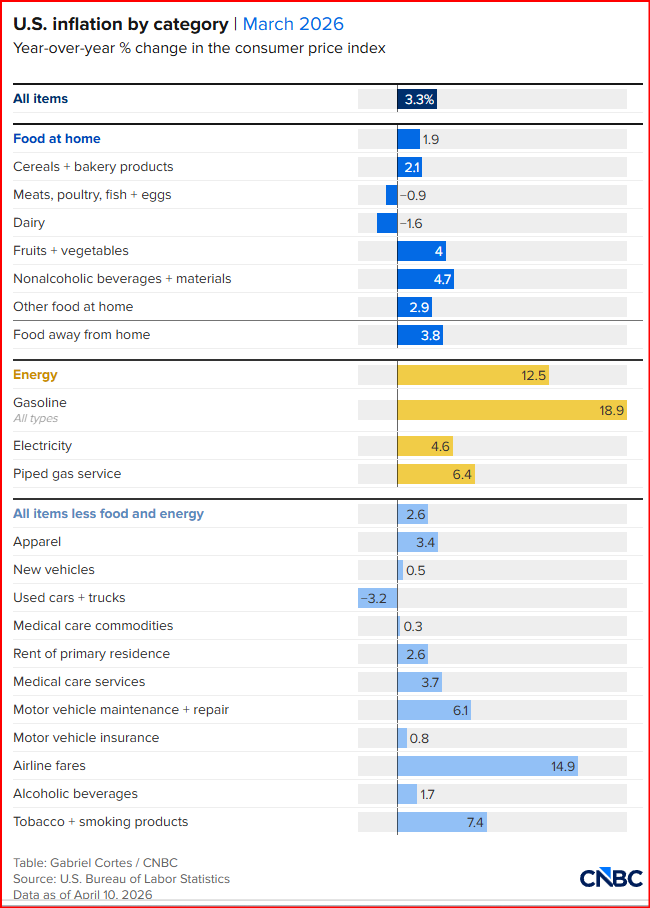 "The Consumer Sentiment reading from the University of Michigan's Survey of Consumers sank 11% to an all-time low of 47.6 in early April 2026, far below both market expectations of 52. That was 9% lower than last year. Consumers “across age, income, and political party all posted setbacks in sentiment, as did every component of the index, reflecting the widespread nature of this month’s fall,” the survey director said in a release. “Assessments of personal finances declined about 11%, with consumers expressing a substantial increase in concerns over high prices and weaker asset values,” the release added. “Open ended comments show that many consumers blame the Iran conflict for unfavorable changes to the economy." - Inflation surged following start of Iran war, March CPI report shows - USA Today - Andrea Riquier Rachel Barber Jessica Guynn Betty Lin-Fisher - April 10th, 2026