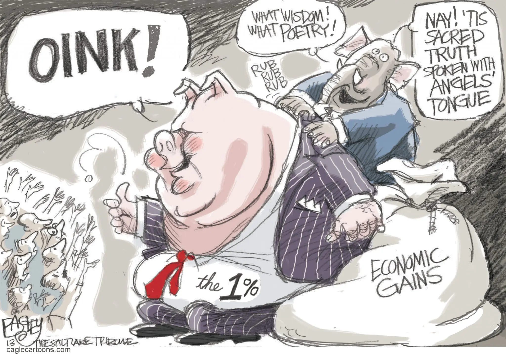 Personal and corporate oligarchy drives politics, war and price-gouging for those of us in the Middle that bear the tax burdens most severely. To keep us in line, oligarchs invest in congressmen that will continue to protect them from taxes and provide markets with minimum oversight via legislation. If we fail to remember this history, we will and currently continue to experience oligarchy as the curse of the middle class.