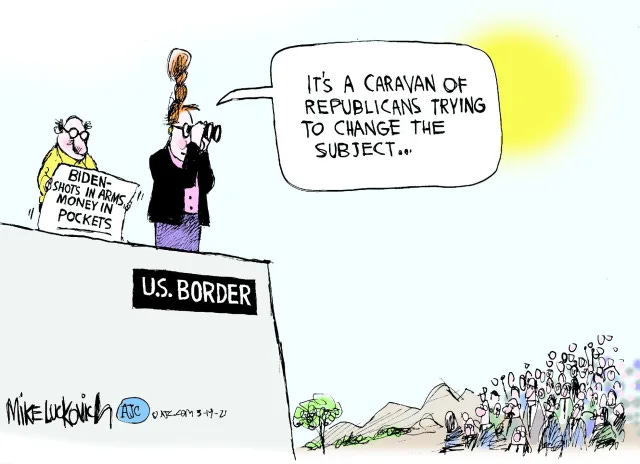 To make matters worse, the GOP negotiated with and received nearly everything that they asked for in a Senate Bill from Senator Lankford of Oklahoma but refused to even vote on it in the House of Representatives. Trump demanded that Speaker of the House, Mike Johnson refuse to bring the bill to the floor to even discuss it so that he could use the issue to his advantage during his campaign. They do NOT want to solve the border, only prolong it for political purpose. To be fully accurate, most of what the GOP demanded in the bill will offer little to controlling migration. It is a global issue caused by war, climate change, authoritarian national leaders etc. The proposed GOP bill is nothing more than, the proverbial Dutch boy with his finger in the dike attempting to hold back the sea.