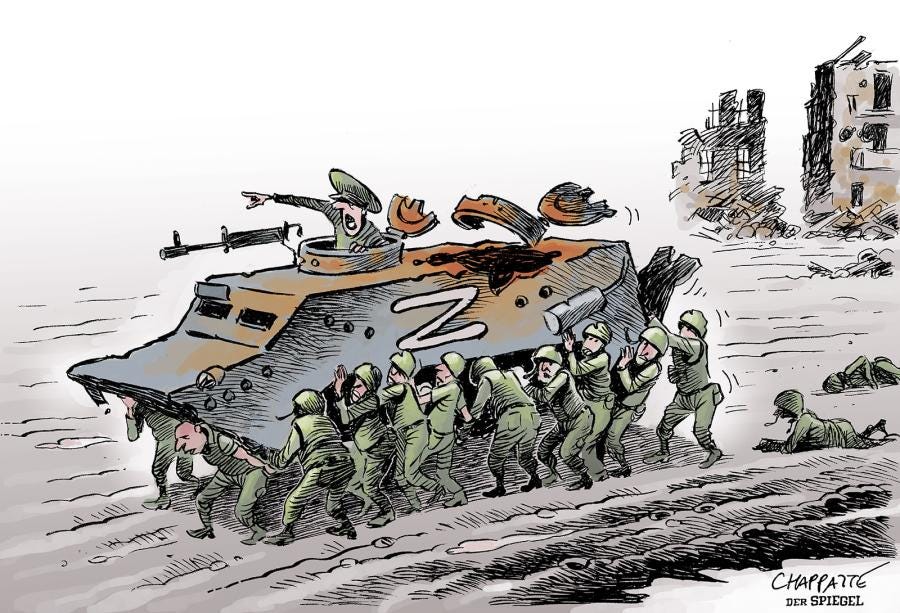 Putin’s approach to Ukraine is classically Russian. In this, I mean that Russian or the Soviets before, them prosecute war with a scorched earth strategy, heavily dependent on human waves instead of maneuver and tactics. Just like the decimation of WW I Russian troops that led to the end of Tsarist Russian in 1917 and that ushered in, the Marxist era, there are failed logistics, human waves, poor or poorly maintained weapons systems and an insistence of brutally savage treatment of their adversaries, military and civilian. Add to these critical failures, Imperial Russia was experiencing debilitating morale nationally due to oppressive, corrupt and incompetent political leadership. If this sounds familiar, it is also… Putin’s Russia.