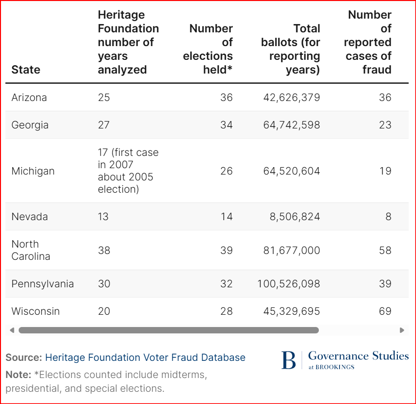 Then there’s the blatant lying about election fraud from the Republican Party. Some of the most comprehensive research on election fraud actually comes from the nefarious, Heritage Foundation, who authored and published, Project 2025, and who has been tracking such cases in detail for over half a century. In the graphic below you can clearly see how paltry the claims of voter fraud are.