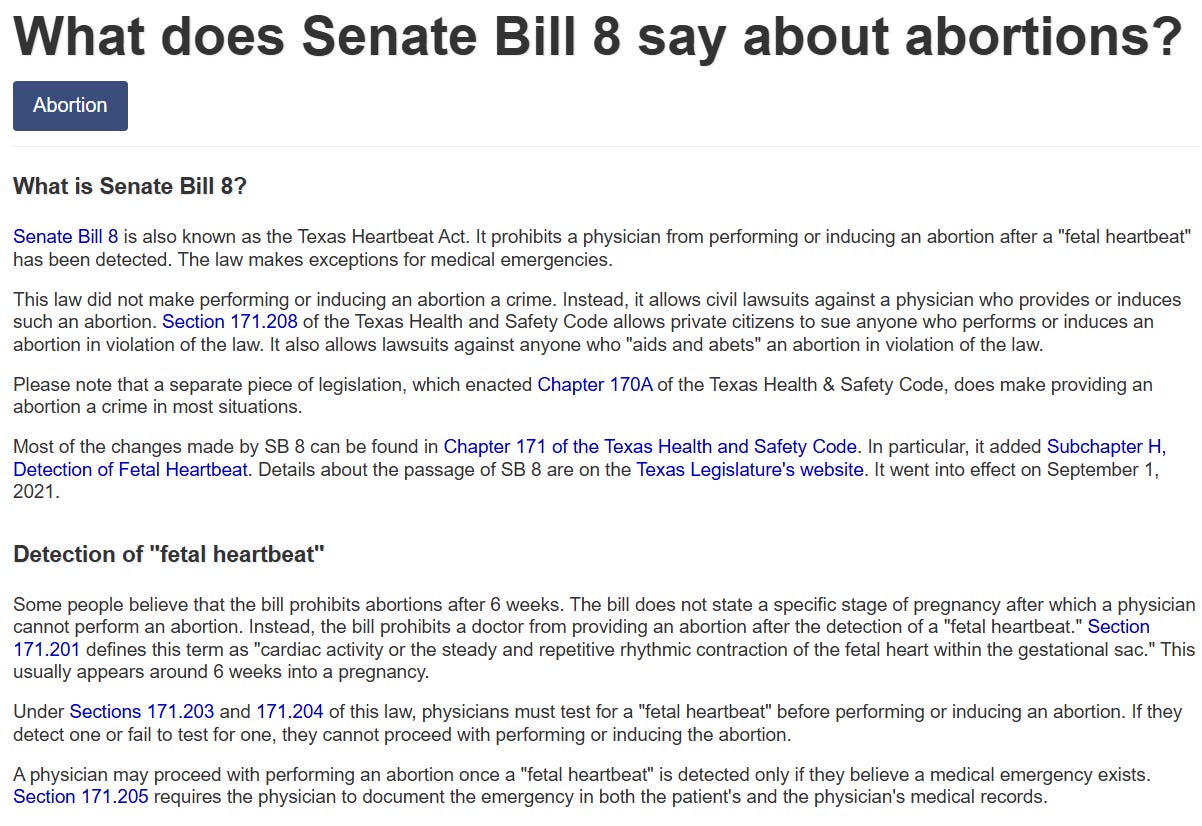 Remember, it’s not Texas women who are criminally liable for seeking abortions or even medical opinions regarding their specific medical cases that may require an abortion for the safety of the woman. All of this is part of SB8 passed by the Texas Legislature in 2021. It is those who transport, provide support for or even recommend traveling out of state for an abortion. Women and their families though can be “turned in” by family, neighbors or others who suspect them of discussing and taking steps toward an abortion. SB8 is quite accurately called, a vigilante abortion law. Those who turn them or their family members in can receive rewards for a successful prosecution. This includes a payment of not less than $10,000 plus court fees.