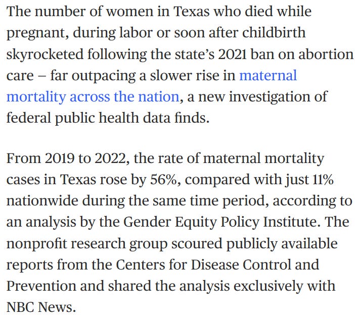 I wish everyone the very best for your weekend. I will though add this caveat; considering next Tuesday’s election, a great weekend will come with the obstacle of deep anxiety for most Americans. For me it is the same. Over the decades, I have developed a steadfast and effective tactic to deal with such situations, and that is to, get off my hindquarters and do something about it. This is in many ways, why I began writing this publication in the first place. Well friends, today’s piece will not be the one I intended to write but is something I must write, after catching a headline in one of my news feeds this morning. Another dead woman in Texas, due to Greg Abbott’s and his Texas Taliban’s (TX GOP) draconian and vigilante war on women.