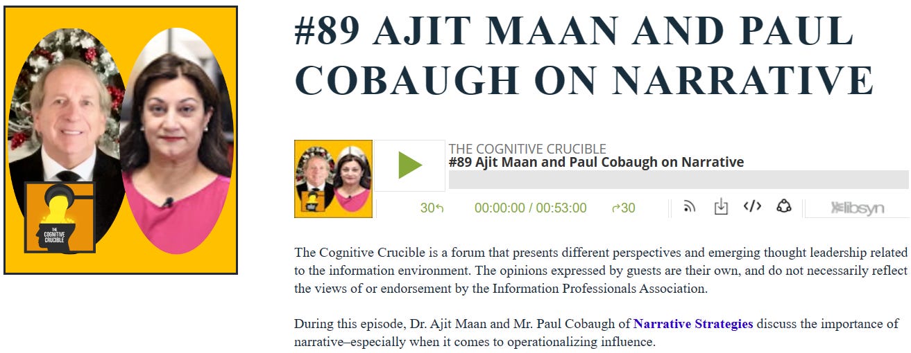 If we cannot protect the minds of our own military, the rest of the nation remains at worse risk to adversarial influence. This is called resilience. You can’t get to cognitive resilience for our citizens without understanding a person’s identity. You can’t do that, unless you understand narrative and Narrative Warfare. We don’t, hardly anywhere in the national security community, let alone know how to operate with it. We’d better learn because the military, who should be doing a great deal of protecting, is apparently losing ground faster than the general public.