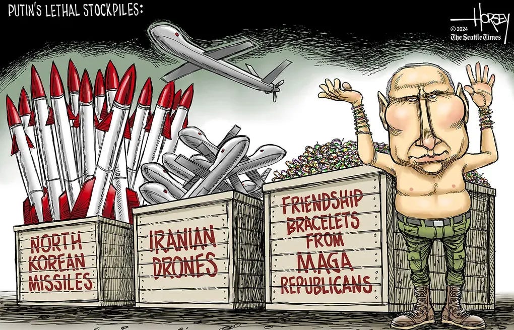 Had the GOP not worked with Putin by denying funding to Ukraine, Putin’s efforts would likely have suffered critical setbacks by now. That GOP support by default, assisted Putin, Xi, Tehran, Hamas and Hezbollah, all hellbent on genocidal aggression. The final piece of this part of the ongoing tragedies, is that while we and NATO supplied Ukraine, N. Korea became far more important on the global stage by being a low-end but critical supplier to the Russian military in Ukraine. Maybe that the next time the N. Korean pipsqueak begs for aid to feed his people, as he does regularly, he’ll depend on Putin and Xi for help, instead of us.