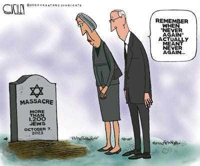 Israel today, mourned the dead and hostages as we did post 9-11 but the difference is, the majority of the world supported us. The precise opposite is the case in Israel’s case.
