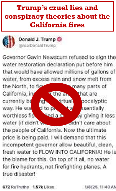 The credible sources for Trump and MAGA’s cruelty are plentiful. Below are some examples, along with quotes about the fires from the Trump and his MAGA GOP.