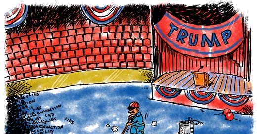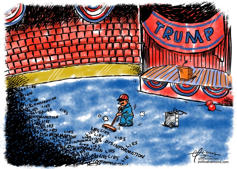 Last night at the Garden was not an exception, it was the rule for MAGA and especially Trump. Just because he didn’t speak all of the words last night doesn’t change a thing. It’s who he is, and his lemmings will mimic anything he says or does. The only way to stop this insanity with so little time left until next Tuesday, is to ensure that those who wish to sustain our republic, vote. It is exactly, that simple. It has nothing to do with politics. It’s about stopping a stopping Trump’s slow-roll, civil war.