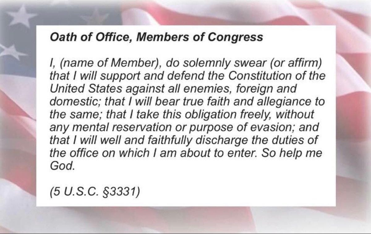 When Russian operators were found out in Ukraine, they were immediately arrested, including high government officials. Ours are battling for control of half of Congress. Yes, McCarthy, the spineless enabler of those who would overturn or render impotent, our Constitution, is now fighting for his life-long goal, against those even more extreme than he and his gang. None of them represent American democracy and I for one, who still honors his military oath of service, holds the whole bunch with the contempt only reserved for traitors to their oaths of service. Please see below. It doesn’t say a word about armed insurrection and failing our commitments to allies and partners.