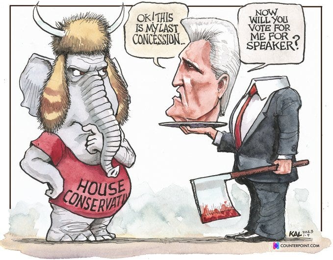 As discussed in yesterday’s TAT, this is a humiliating drama playing out in front of the world. Today’s lead story in the BBC News was how the Republicans can’t sort out the mess that they, themselves created. Not only is President Zelensky putting on a master class in resisting immoral aggression, but all of Ukraine is putting on their own masterclass in protecting the very democracy the Republican party has undermined in the Trump era. Most tragically, Putin is Ukraine’s aggressor while concurrently attacking us and our allies in a different form, via influence operations. Those arguing over the Speaker’s job in Congress are the same ones who refused to acknowledge the Russian assault on our elections. In fact, via their hero, Trump, they consistently empowered Putin. Not one of them can be trusted with democracy, no exceptions.