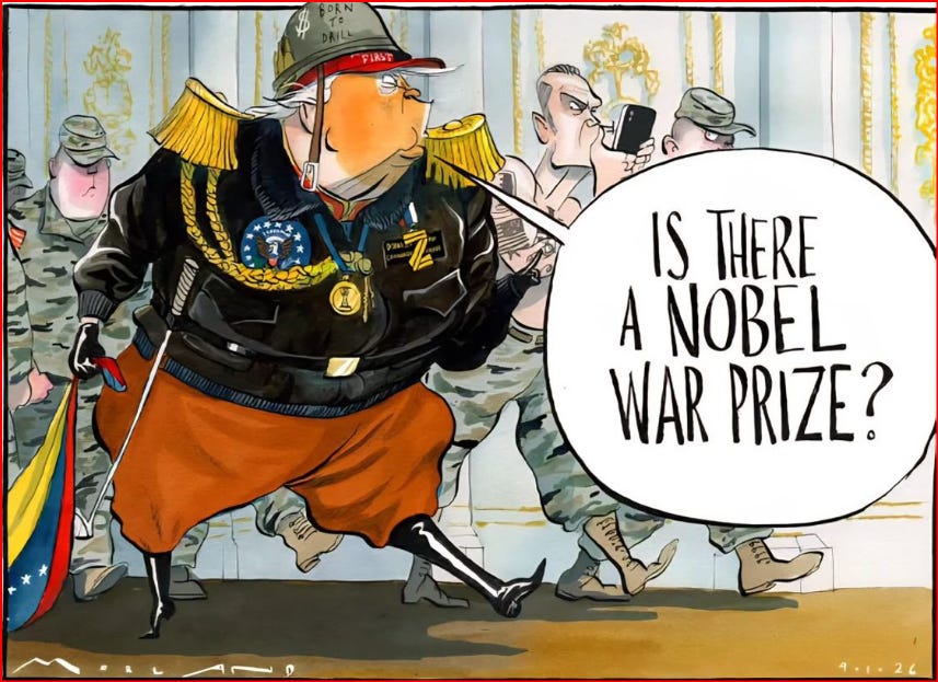 First the facts: the US government attacked a sovereign nation, removed its leader and has declared that we will now run Venezuela. This is called occupation and the last couple of times we tried this, it ended badly. Did I miss that elusive and requisite Declaration of War from Congress? I’m pretty sure I would have seen something that big in my news feed! At this moment it is also quite clear that we started this war with Venezuela, with the full intention of giving US oil supermajors control over Venezuelan fossil fuel resources. Yes, we just allowed a sitting president to start a war, occupy a nation, steal its resources and then dictate his terms to the Venezuelan people. I guess that POTUS doesn’t really want that Nobel Peace Prize after all. Okay, I confess to a bit of satire in my comments.