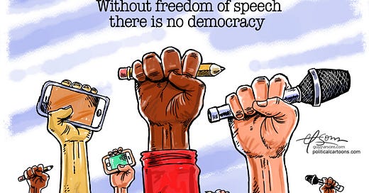 Our First Amendment to the Constitution and the Bill of Rights is a cornerstone of being an American. These rights belong to every American and have been the bedrock of democracy since the early Greeks, or longer. Free Speech is priceless to those who embrace our true national values. We are endowed with the right to support, protest, seek redress etc. Why should we ignore this?