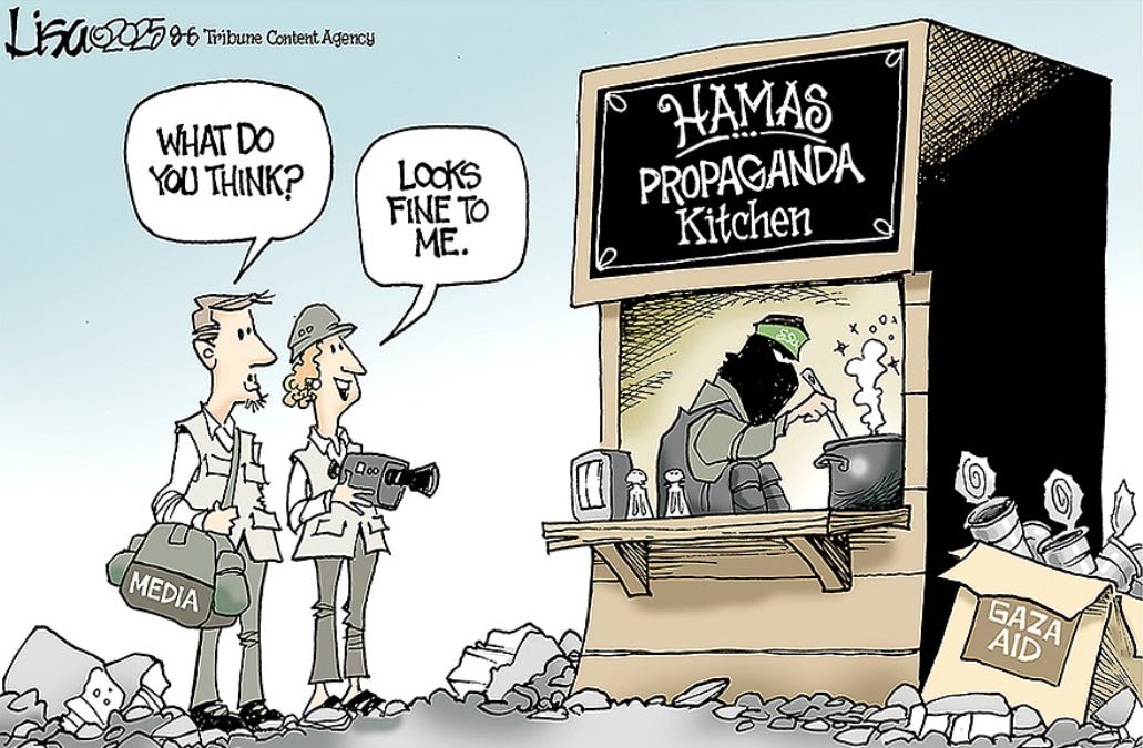 As most of you know, I am fond of adding political cartoons in my essays. I do this because often, the proverbial old saying, “a picture is worth a thousand words,” is exactly true. As I look for these clever and insightful graphics, we can easily see how biased most mainstream media is biased against Israel. Israel is the “bad guy” in roughly 90% of all political cartoons about Gaza. As I wrote a couple of times right after the war in Gaza began, media is extremely biased and this is largely due to most global media being owned by six primary multinational media conglomerates.