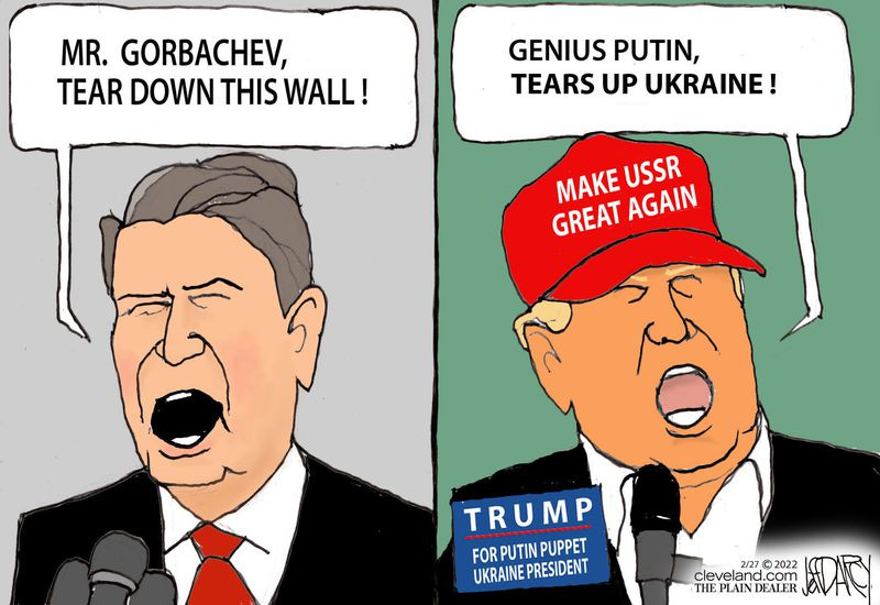 As President, Ronald Reagan worked to tear down the Soviet Union. Donald Trump continues to cheer on Putin's attempts to rebuild it. The Cleveland Plain Dealer