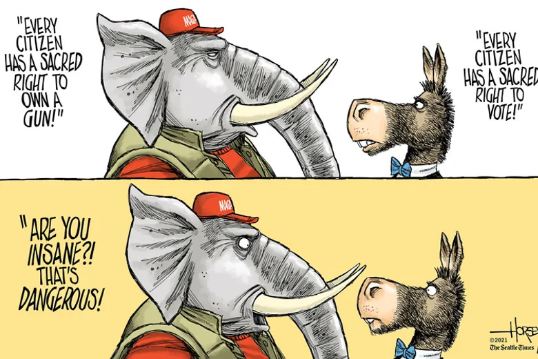 a. Part of the activity surrounding the conspiracy theory of election denial, is that across the nation, Republican states are desperate to suppress or deny constitutionally guaranteed voting rights. Nothing could be more un-American. If this doesn’t convey extremism attitudes towards our national values, nothing will convince you. Evidence of voter fraud is nearly non-existent. Supporting laws that restrict voting rights is supporting a “solution, looking for a problem.” In most cases, the handful of voter fraud crimes pertain to Republicans, not the opposition.