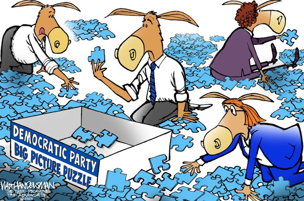Narrative Warfare Narrative Warfare is the employment of influence campaigns, revolving around connecting to audience's identities, better than your opposition. In short, a war of influence for the control of the identities of all relevant audiences. It is our identities that control the meaning of all that we experience, whether true or not. Today's GOP has had their identity conditioned over 30 + years by right-wing media, especially FOX News. Conspiracy theories are key elements of their identity. That identity is no longer patriotic by traditional standards, but has been converted into a reality that only allows them to believe in the fake-patriotism of their narrators, such as Trump, elected representatives and all right-wing media. This is precisely why that Republican voters are completely dethatched from our truth and reality. To them, whatever their narrators say, is reality. - Cobaugh - July, 2025When they take charge, they MUST tell the progressive, far-left wing of the party to get in line and stop dividing the party. The fight is for moderate middle voters, even Republicans, disgusted with their MAGA party. So much of the 50501 protests have focused on far-left issues that are distressing to moderate voters. It’s not that I don’t care about them expressing their own interests but they are clueless that their personal agendas are devastating to the party as a whole. Let me explain.