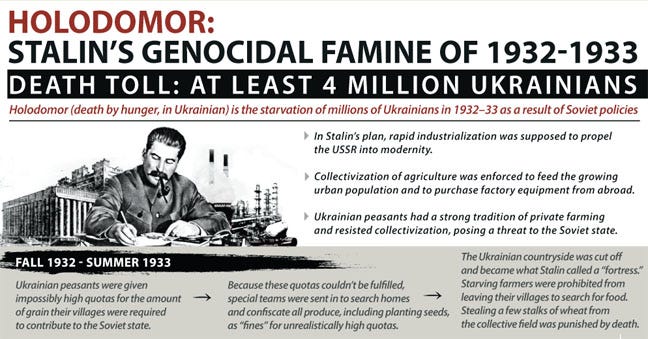 Please see this information on Stalin’s version in the early 1930s, called the Holodomor, in the embedded link.