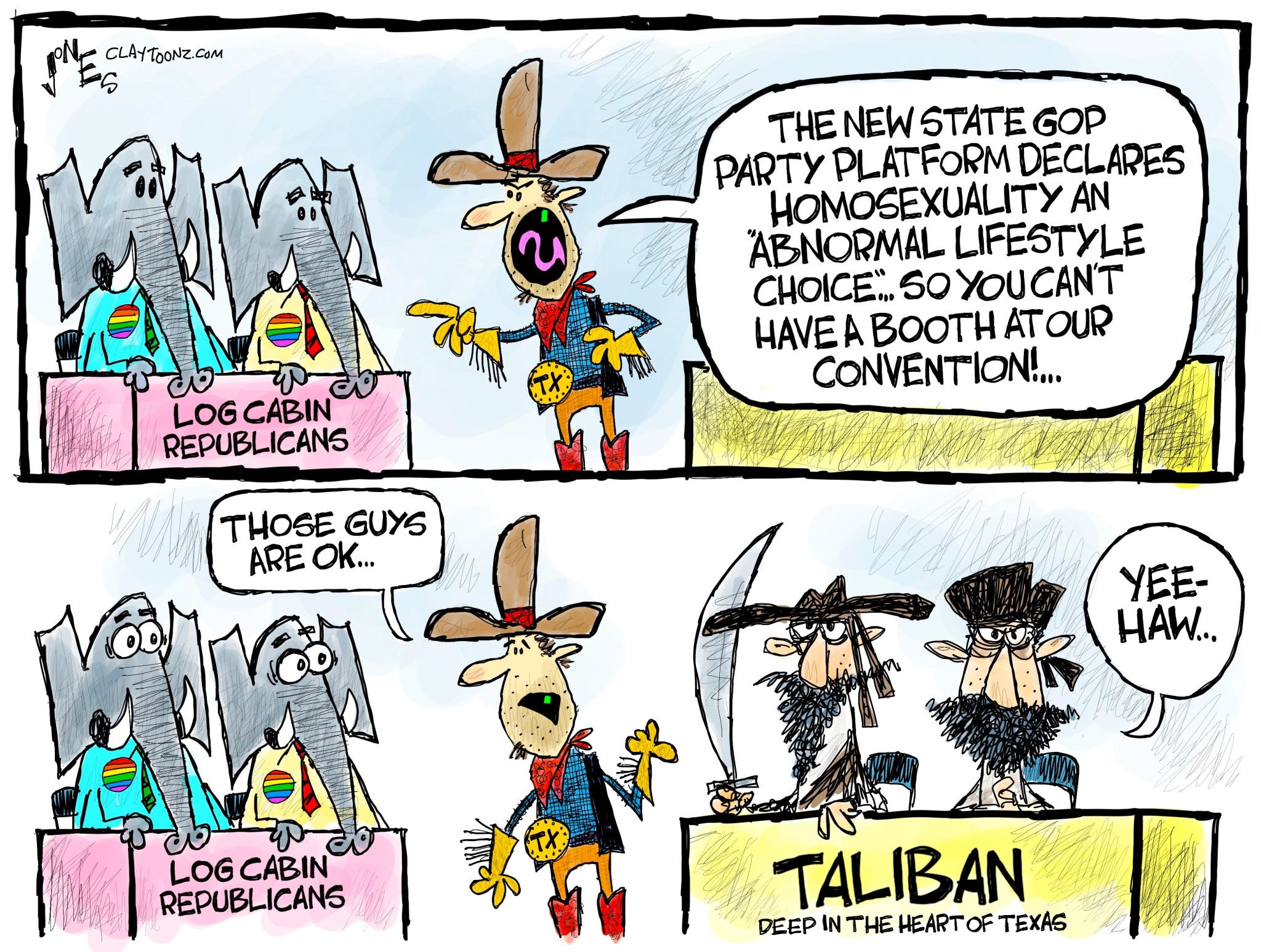 Like most topics, the un-American, oppressive theocratic government being imposed on all Texans, daily, is not only unconstitutional but the precise opposite of American values. This though is no hinderance to the Texas GOP, headed by Gov. Greg Abbott. Then there’s his hitman, the indicted felon, AG Ken Paxton, the Lt. Gov, formerly known as Danny Goeb, but now, Dan Patrick and of course, the enabler in chiefs, Dade Phelan, the TX legislature and then, the state supreme court that rubber-stamps the anti-American agenda of the artist formerly known as, the TX GOP but now… the Texas Taliban.