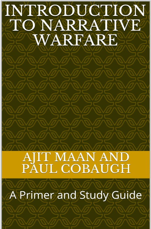 "Narrative is as natural to human beings as breathing because narratives give meaning to events and circumstances. We are meaning-seeking animals and our primary means of meaning-making is narrative. Narrative is the way we create, transmit, and in some cases, negotiate meaning. Narrative framing confers meaning to the facts and elements of a person’s or community’s identity. A critical aspect of narrative is that it is unique to a specific identity or audience. Every person or group of people with similar identities has a unique narrative which expresses who they are, their history and is their lens to the world around them." - Introduction to Narrative Warfare, Primer and Study Guide - Ajit Maan, PhD. and Mr. Paul Cobaugh - Amazon - 2018