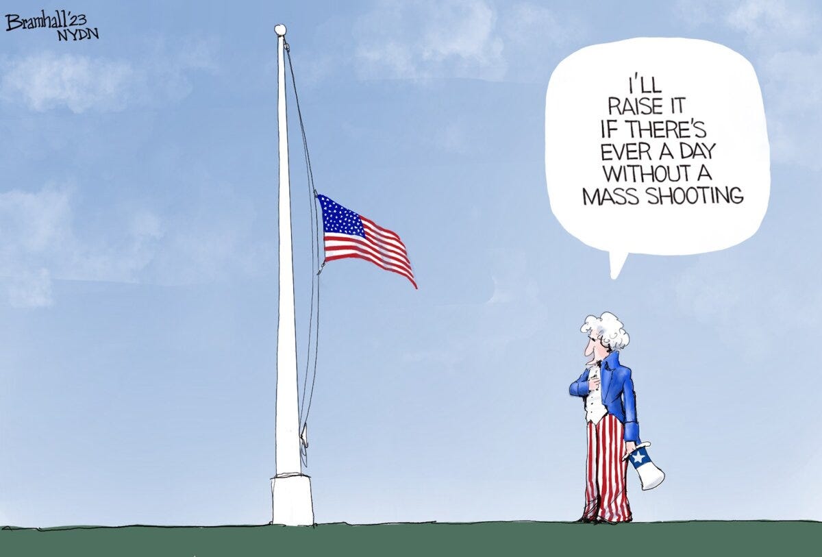 Believing that guns are as an important a piece of our patriotic heritage, as the Stars and Stripes, is inane and any simple read of our Second Amendment shows this clearly. Gun access is clearly indicated to be in support of a, “well-regulated militia.” Paintings of the Revolutionary war period of American history show guns in pursuit of our liberty, but you will notice that this issue is mostly minor at the Constitutional Convention in Philadelphia. They were focused on the highest ethical standards and protecting them, not waving assault rifles in public and using them to murder innocent citizens. Today’s GOP would have you think that a bunch of overweight, white men running around with guns, wearing camo is patriotic. The truth is, precious few of them served their nation in uniform due to cowardliness and selfishness.