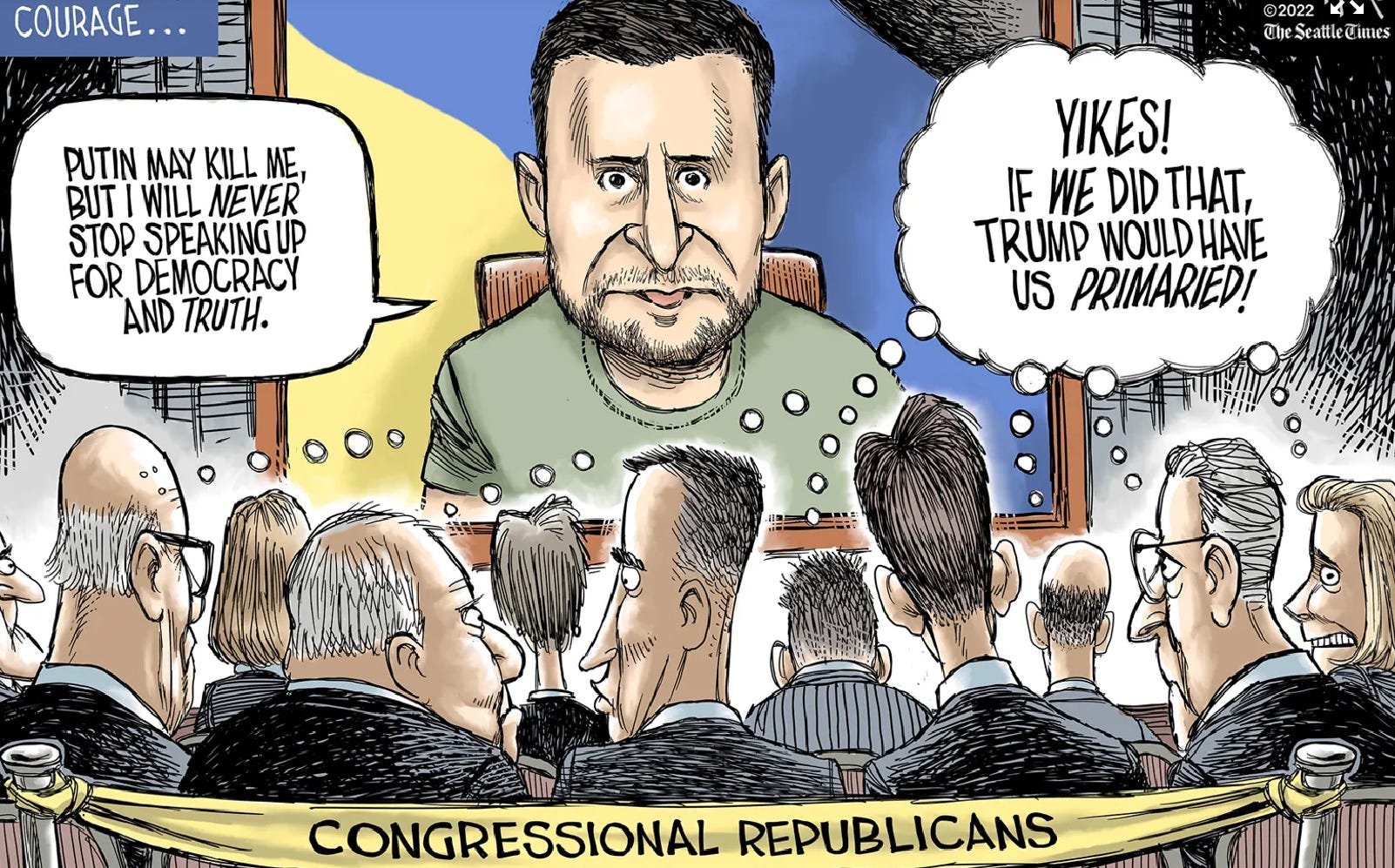Zelenskyy schools Trump and his sycophantic GOP, on how to defend democracy from tyrants.